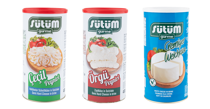 Der exquisite Geschmack von Örgü Zopfkäse, sein intensiver Geschmack, die weiche Konsistenz des Cecil Zupfkäses, der einzigartige Geschmack von gegrilltem Käse und viele weitere Köstlichkeiten erwarten Sie unter der großen Auswahl an Sütüm Gurme Produkten. Sütüms Spezialitäten, die aus sorgfältig ausgewählten Zutaten hergestellt werden, verleihen Ihrem Tisch Geschmãcker, die Ihren Gaumen erfreuen.